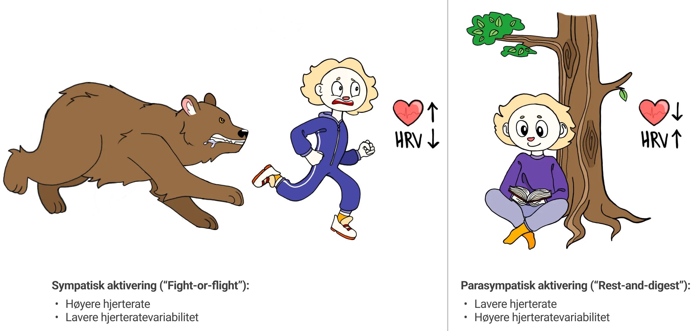 Det sympatiske nervesystemet aktiveres ved fysisk eller mental stress, og gjør blant annet at hjertet slår raskere og kroppen mobiliserer mer energi. Dette resulterer i lavere pulsvariabilitet (HRV). Det parasympatiske nervesystemet aktiveres derimot under hvile og avslapning, og får hjertet til å slå roligere og øke HRV. HRV kan derfor brukes som et mål for å forstå hvordan kroppen reagerer på stress og belastning, og kan hjelpe med å identifisere tegn på overtrening, fysisk og psykisk stress, og behov for restitusjon.